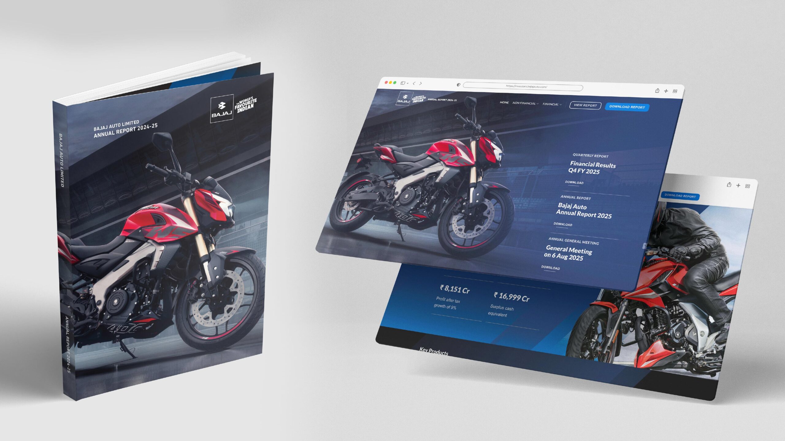 Over the past decade, our partnership with Bajaj Auto has thrived through various projects and collaborations. These include the design of their annual and financial reports, brand consulting, strategic design and communication design.